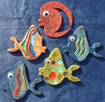2012Vissen deels geglazuurd ook enkele met ingesmolten glasdeeltjes