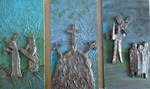 2013Taferelen uit de kruisweg van Jezus Keramiek met metaalachtig uitzicht op mdf gemonteerd